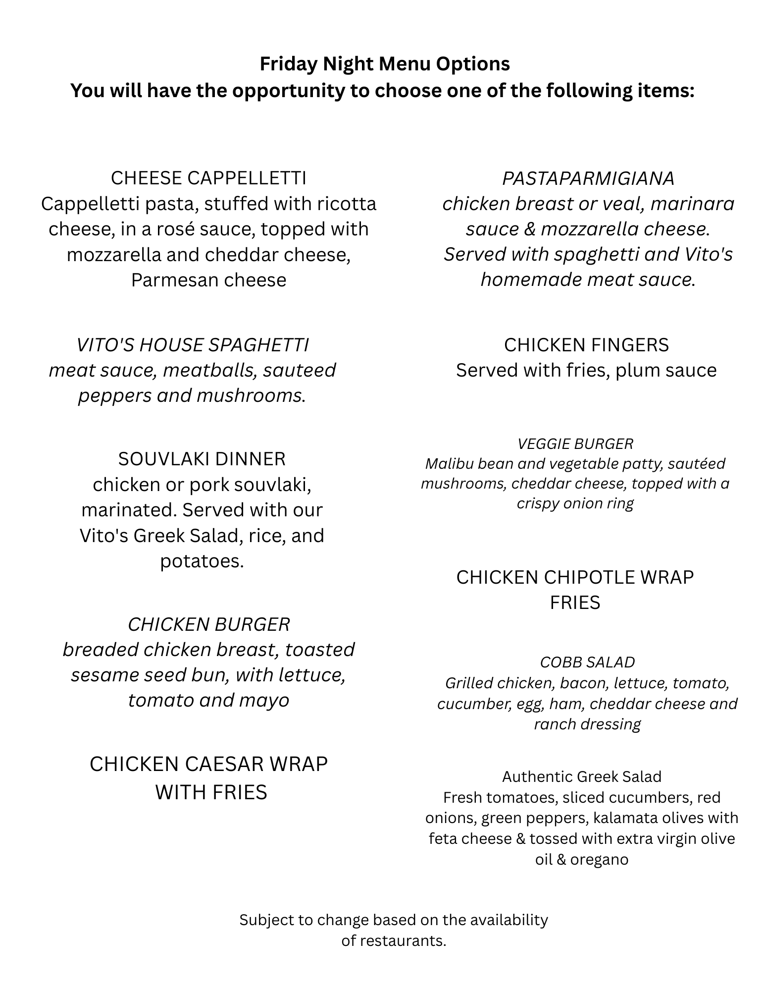 Menus are posted in the photos — please review before sending your deposit.